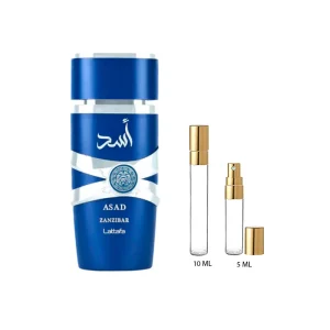 Asad Zanzibar disponible en decants de 5 ml y 10 ml. Fragancia masculina fresca, exótica y envolvente. Ideal para hombres que quieren destacar con estilo y originalidad.