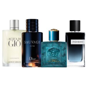 Set de decants con 4 perfumes icónicos de diseñador. Disponible en 5ML y 10ML. Ideal para probar, regalar y descubrir fragancias top con descuento.