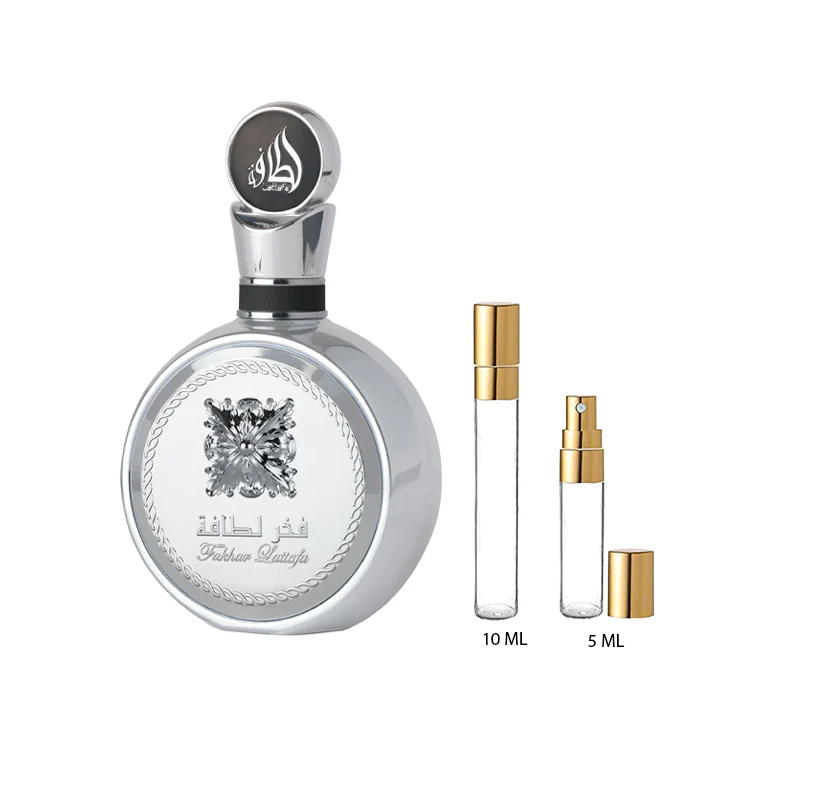 Decant Lattafa Fakhar Platin es un perfume unisex aromático fougère con notas especiadas y amaderadas. Moderno, versátil y elegante.