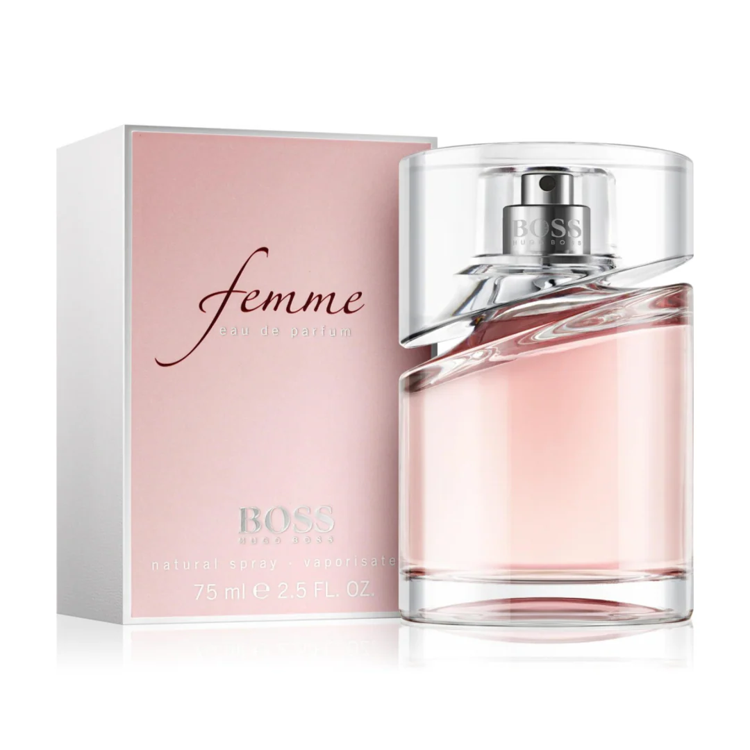 Hugo Boss Femme de Hugo Boss es una fragancia femenina de la familia floral frutal lanzada en 2006, reconocida por su delicadeza, suavidad y elegancia atemporal. Diseñada para una mujer femenina y sofisticada, ofrece un aroma ligero pero envolvente.